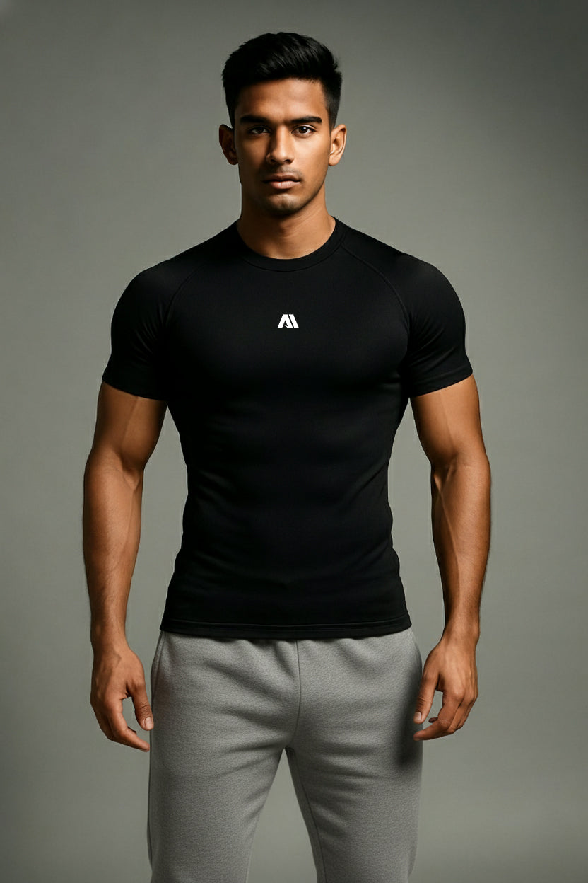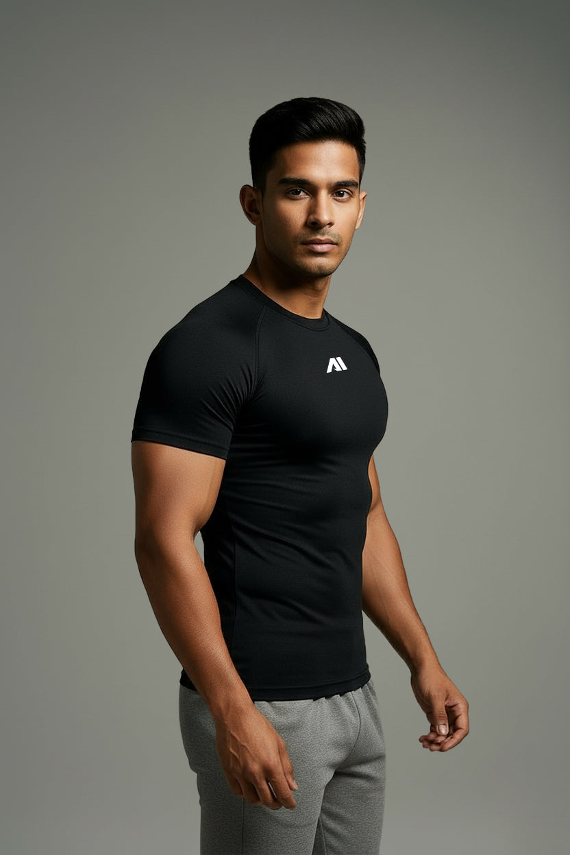 Jet black Colour Compression T-shirt