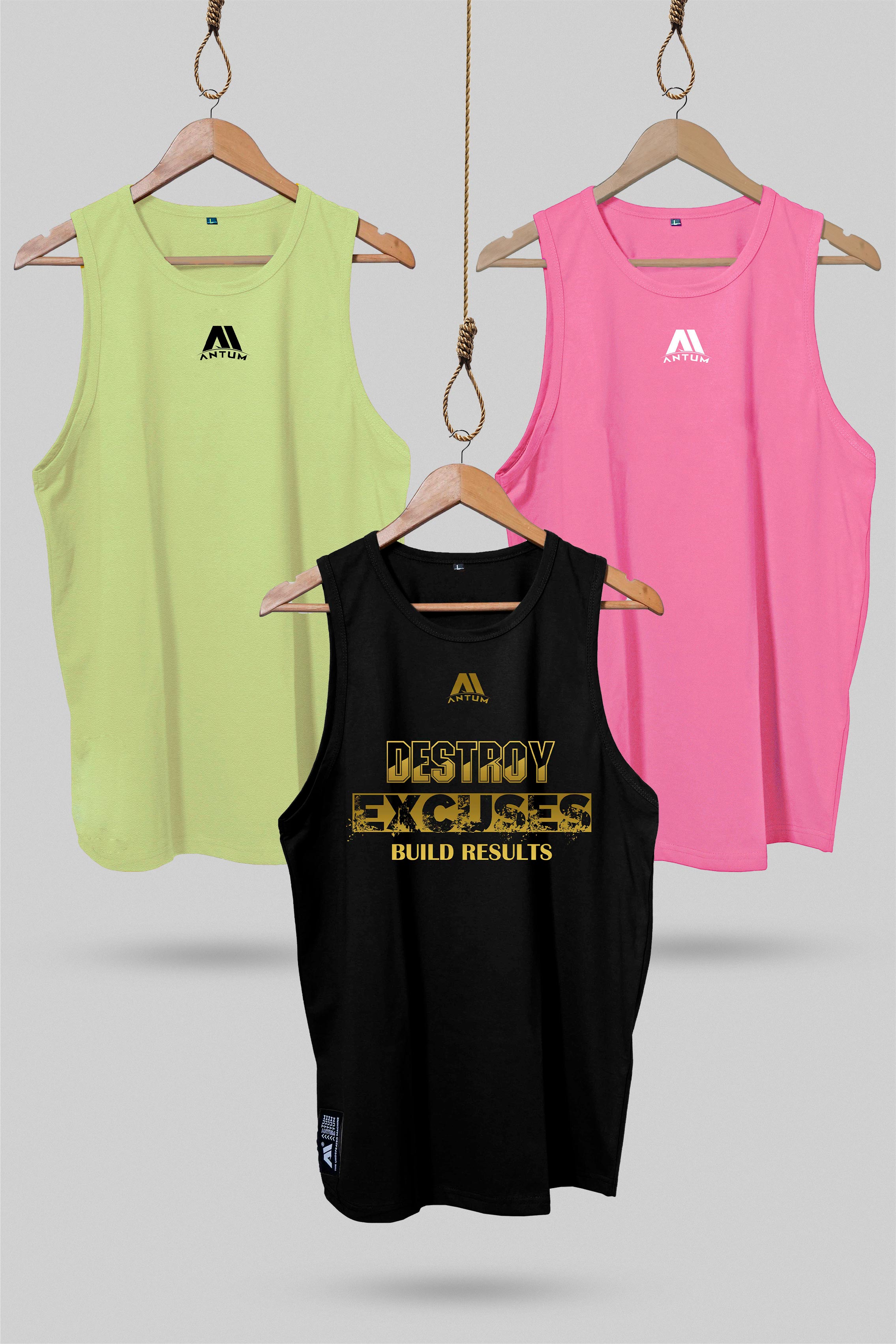 Pack of 3 Colours Cotton sleeveless T-shirts